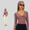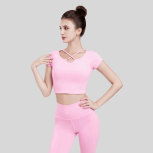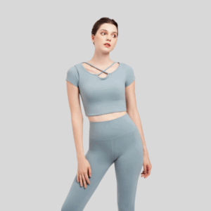 Áo croptop: Thiết kế tay ngắn hiện đại cùng chi tiết 2 dây phối trước độc đáo, vừa tạo điểm nhấn trẻ trung, vừa hỗ trợ nâng đỡ vòng 1 nhờ lớp mút ngực và phần bo áo chắc chắn. Công nghệ may tiên tiến giúp ôm dáng, mang lại sự thoải mái và tự tin khi vận động.